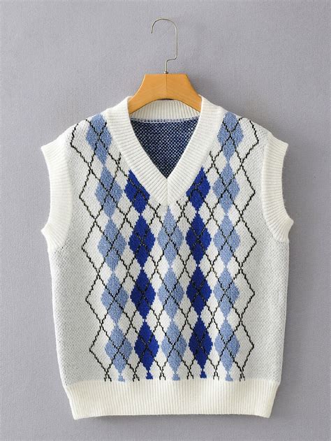 Argyle Print Sweater Vest SHEIN USA Pattern sweater, Sweater vest