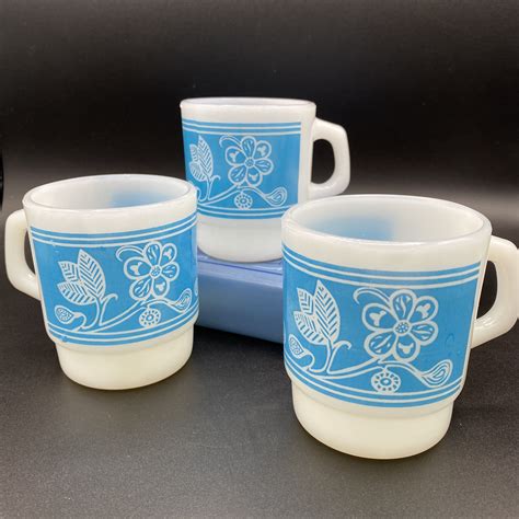 Fire King Blue Bonnie Floral Carnation 24 pc Tea Cup and Etsy