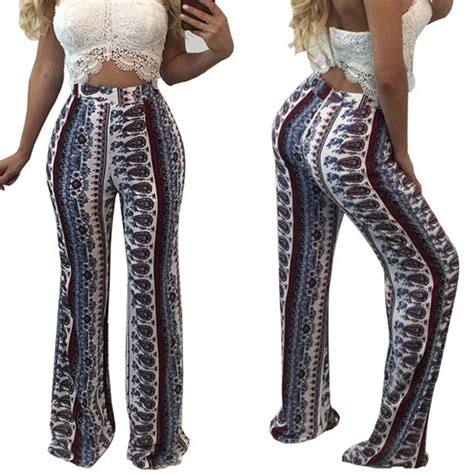 Black Tribal Floral Elephant Pattern High Waisted Bell Bottom Retro