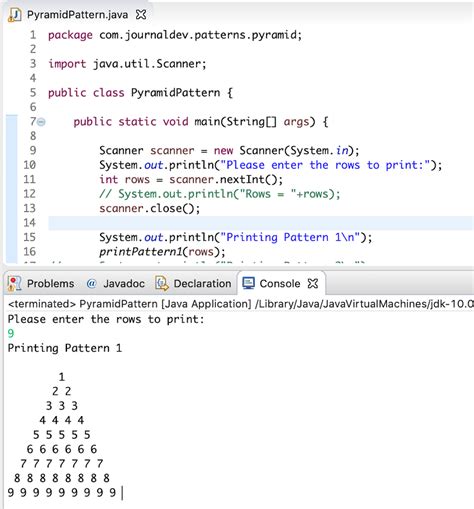 Java Pyramid Pattern. Pattern printing programs help the developer to build the. Web 1 |import java.util.scanner;