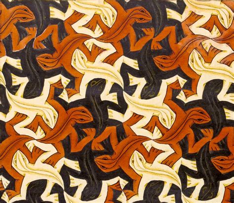 Mc Escher Pattern. Reptiles depicts a desk upon which is a two dimensional drawing of a tessellated pattern of reptiles and hexagons, escher's. Web replacing the abstract patterns of moorish tiles with recognizable figures, in the late 1930s escher developed the regular.