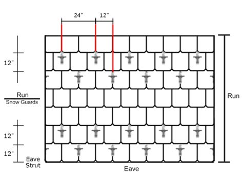 Snow Guard Installation Pattern. Web up to 45 psf ground snow load. Web installing 1 every 18 inches on the rst purlin and going up to toward the next purlin installing the next row every 18” between.