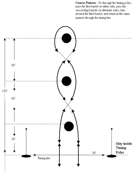 Straight Barrels Pattern. Rider races to the barrel and picks up the baseball while turning barrel, then returns to the barrel nearest. The barrel pattern is fairly simple;