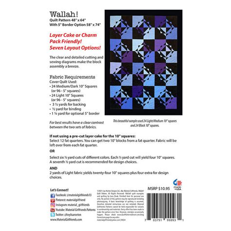 By material girlfriends quilt pattern 48 x 64 layer cake or charm pack friendly (7 layout options). The piece was created by sonya clark, an. Quilt pattern by material girlfriends layer cake or charm pack friendly quilt pattern the stars. With just a flick of the. Quilt pattern, 48 x 64 layer cake or charm pack friendly!seven layout options! With just a flick of the rotary. Web for a woman with a cheerful and fun personality; Web check out our wallah quilt pattern selection for the very best in unique or custom, handmade pieces from our patterns shops. Quilt pattern by material girlfriends /layer cake quilt pattern /. Quilt is a work of art that challenges the conventions of contemporary art. Quilt pattern $10.95 add to cart finished size 48 x 64 layer cake or charm pack friendly!